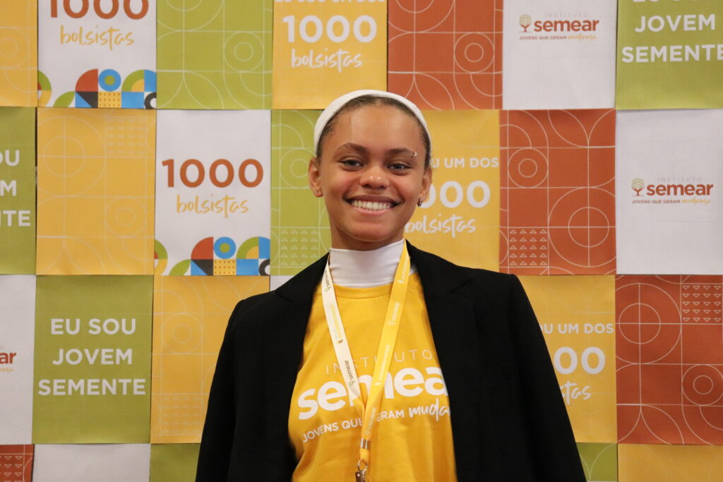 É nesse contexto que ganham ainda mais sentido as ações de jovens que escolhem o cuidado com a memória e a identidade negra como forma de resistência e reconstrução. Quando uma jovem decide se debruçar sobre a história viva de uma comunidade quilombola urbana, ela não está apenas preservando o passado, mas também está afirmando que essa história importa, que essas pessoas importam, e que a cultura negra é um patrimônio de todos. É exatamente isso que faz Maria Eduarda Lopes Divino em Campinas, numa atuação que une escuta, pertencimento e compromisso com a justiça social. Ela foi Jovem-Semente do Instituto Semear em 2024 e cursa Arquitetura e Urbanismo na Universidade de São Paulo (USP).